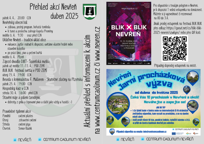 Vítejte! > Aktuality > Přehled akcí v Nevřeni v dubnu 2025